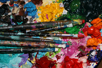 This is for my mum, who is always fascinated by the lumps of paint that get left behind when I paint. As you can see I'm not one for cleaning my paint pallet, paints and brushes. I like the shapes of gloopy towers of solid paint with their pure vivid colour.